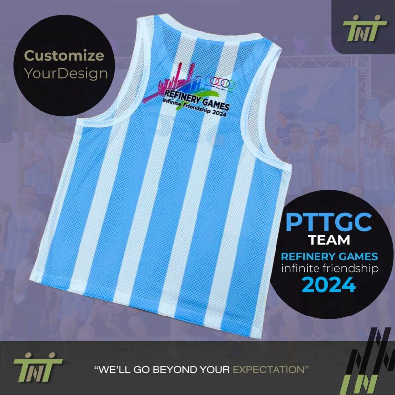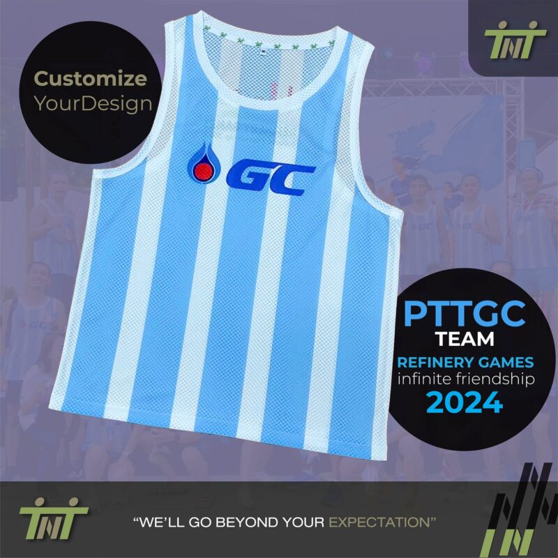 ผลงานเสื้อวิ่ง GC แบบแขนกุด และแบบเสื้อกล้าม สำหรับทีม PTTGC ในงานโรงกลั่นสัมพันธ์ ครั้งที่ 14 Refinery Games infinite friendship 2024